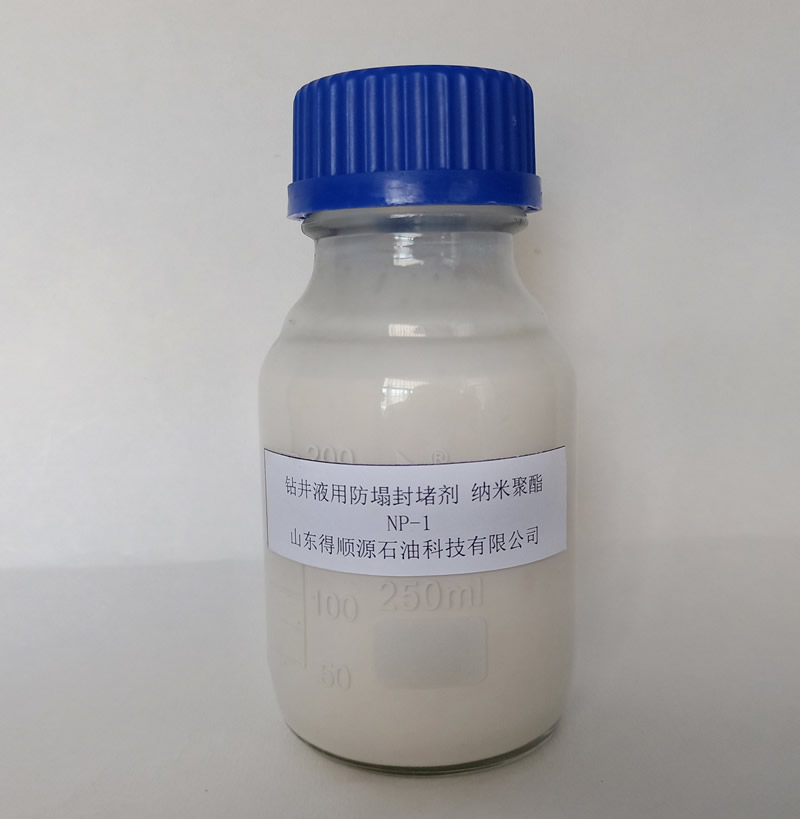 鉆井液用納米聚酯NP-1是由烷基磺酸鹽、烷基酯、交聯(lián)劑等聚合成的多元聚合物,通過(guò)特種工藝加工而成的納米級(jí)封堵材料。